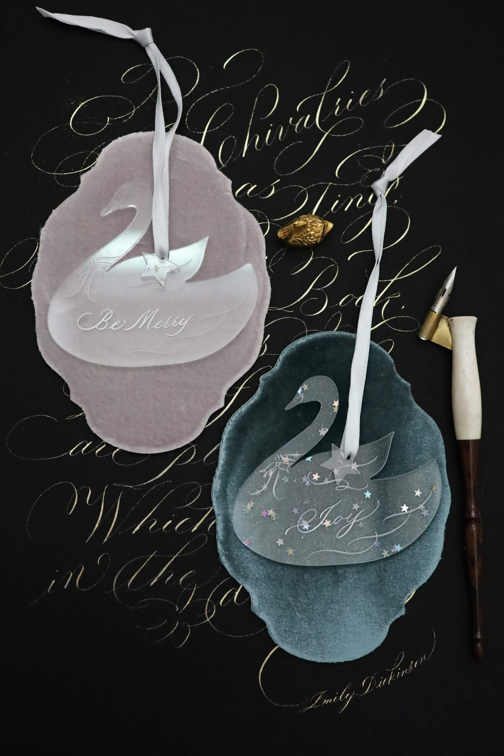 モダンカリグラフィー(西洋書道)でクリスマスのフレーズを練習しオーナメントを作成します。
