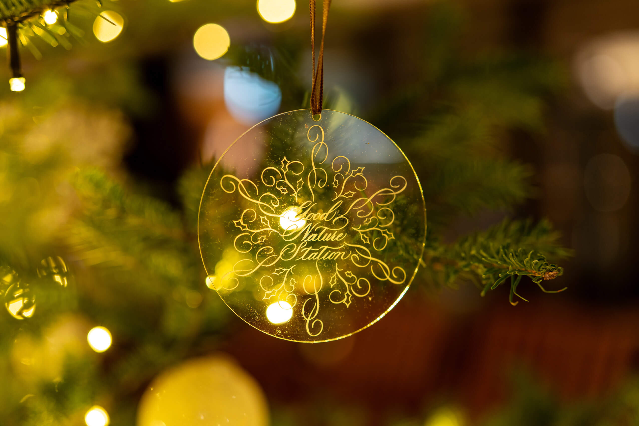 さらに12月25日まで中庭に設置しているクリスマスツリーのオーナメントも角野氏に手掛けていただきました。